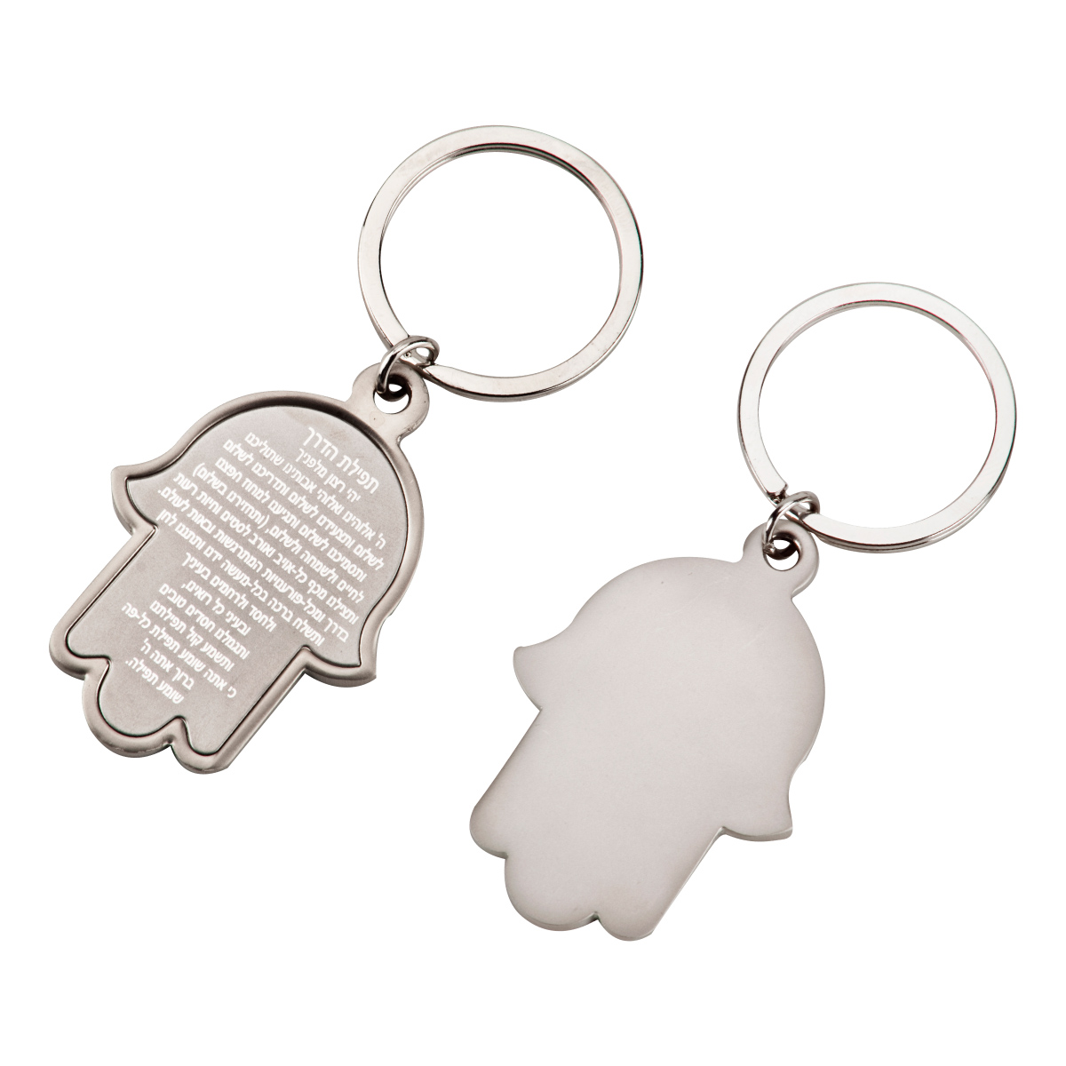 מחזיק מפתחות חמסה עם תפילת הדרך צרובה בצד אחד.